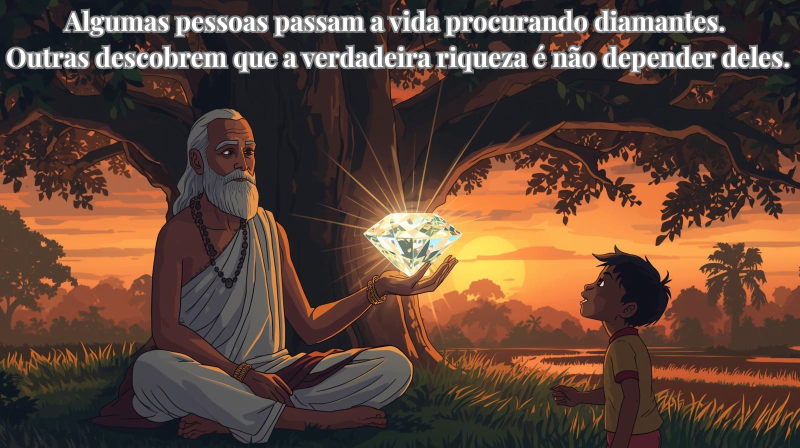 O homem explicou que, na noite anterior, havia sonhado com Shiva. No sonho, o deus lhe disse que fosse até os arredores da aldeia ao entardecer, pois encontraria um sábio que lhe daria uma pedra preciosa que o tornaria rico para sempre.